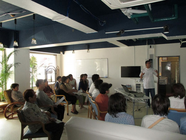 「決まりはありません。」たとえば・・・おしゃべり、食事会、健康体操、勉強会(認知症予防・介護予防等)、ビデオ鑑賞・・・等です。月に一度は、地域にいる専門職が得意分野をそれぞれ持ち寄り、役立つ情報を提供するなど、イベントを企画しています。