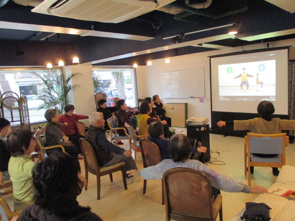 地域の皆さんが集まって、しぞ~かでん伝体操をしています。